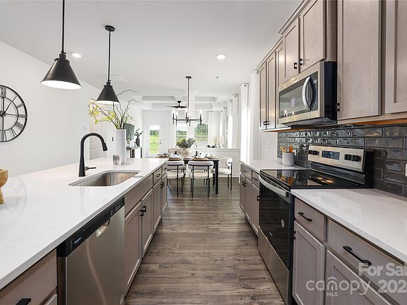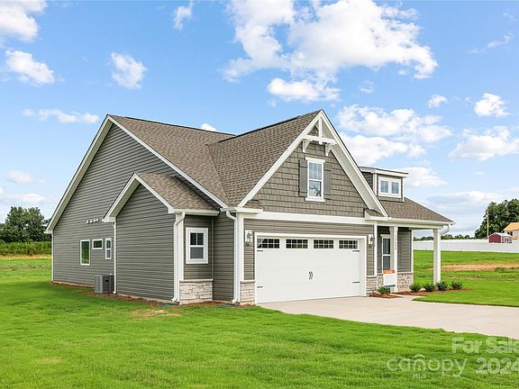 3BR/2BTH RANCH plan -  The Dobson floorplan features 1,587 SF of heated living area and 2-car garage with side bump for extra storage. Home boasts open concept living with great room featuring raised beamed ceilings, dining room, and kitchen with upgraded quartz counters, tile backsplash, and 42" cabinetry!  Primary features luxury ensuite with garden tub and tiled walk-in shower, along with large walk-in closet. Spacious secondary bedrooms,  laundry room, and additional full bath complete the home.  Options/Upgrades include stainless steel appliances, upgraded tile backsplash, 4x16 side bump in garage for extra storage. Large 0.69 acre lot, low taxes, conveniently located between Concord and Albemarle.