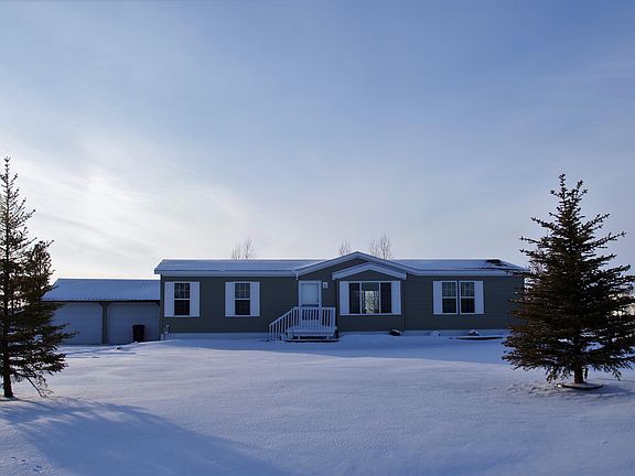 Here's your chance to be just outside of Dickinson's hustle & bustle in your own private peaceful property! Nearly an acre with a 2011 well designed 1500sf Mfg Home and accommodating garage! Home has 3 Bedrooms/2 Full Baths. Kitchen with walk-in pantry! Master with ample storage & luxurious jecuzzi bath. Second & third bedrooms have walk-in closets. Electric Fireplace. Open concept layout. Garage has shop & overhang. Yard is huge. View is therapeutic! Currently financed with FHA!!