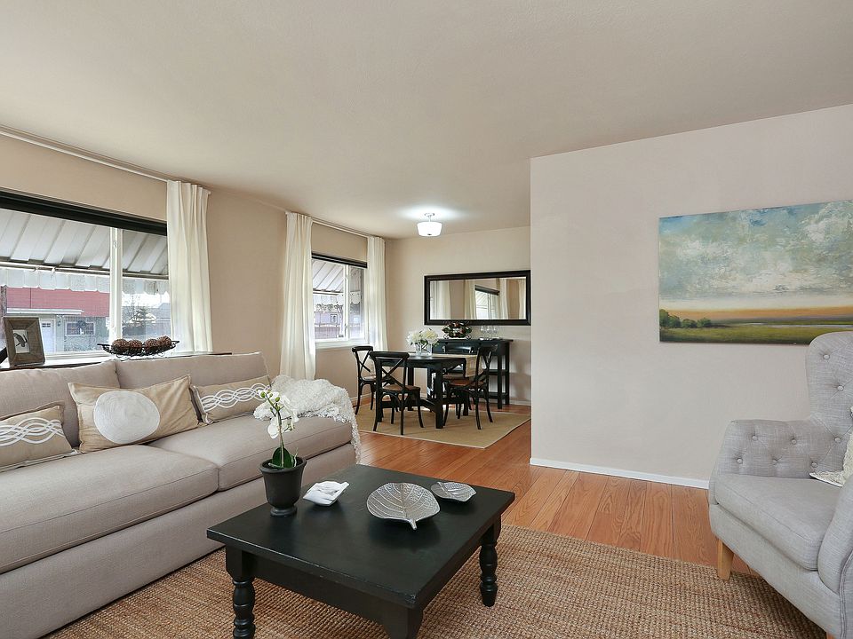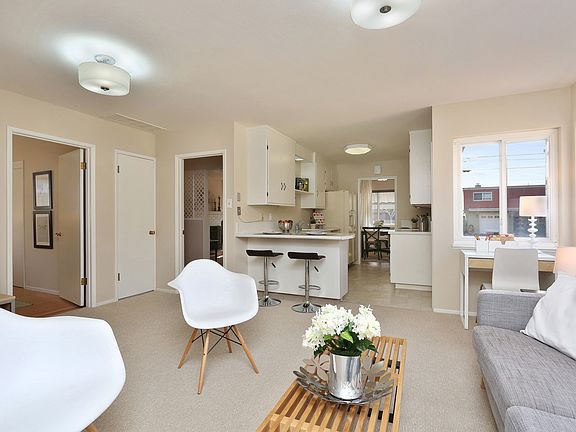 INVITING, PRISTINE MID-CENTURY HOME Offering an opportunity to live on Alameda’s coveted East End, this 3+ bedroom, 2 bath home is situated on a quiet street in one of the Island’s most desirable neighborhoods. Built in 1956, 3261 Adams Street provides nearly 1500 square feet (per county records) of comfortable, single-level living space on a 4300 square foot level lot, located walking distance from Lincoln Middle School and Encinal Station shopping. This pristine home has been lovingly maintained and upgraded and features newly re-finished hardwood flooring, new carpeting and vinyl, new lighting, and new interior Benjamin Moore paint providing a soothing, modern color palette. The mid-century modern aesthetic has been honored and maintained throughout. Entering, one is immediately struck by the user-friendly open floor plan, perfect for comfortable living and entertaining. The entry features a hall closet and built-in planter area open to the living room with its beautiful wood burning fireplace and mantle and large dual-paned energy-efficient windows. Sunlight floods this warm and inviting space. A dining area and spacious family room both flow into the lovely kitchen with its new vinyl flooring, modern appliances, breakfast bar, farm sink, and freshly painted walls and cabinets -- the perfect “heart “ of this inviting home. The family room provides ample storage with its wide laundry and storage closets. The spacious master suite features a dramatic accent wall and sliding glass door opening to the large level yard, creating a gracious indoor/outdoor flow (enjoy morning coffee and the newspaper on the sunny patio just outside your bedroom). Two additional good-sized bedrooms and two full vintage-tiled baths complete the interior floor plan. Also featured is a detached garage, a long driveway, a large front yard, a professionally-installed cobblestone backyard patio with raised perimeter planting beds, new redwood privacy fencing, sump pump drainage system, tankless hot-water heater, a thermostat-controlled forced air heating system, and dual-paned energy-efficient vinyl clad windows throughout the house. This move-in ready East End gem definitely will not last, so if you’ve dreamed of owning a home in one of Alameda’s most desirable neighborhoods, don’t miss this special opportunity to stake your claim at 3261 Adams Street. - See more at: http://www.3261adams.com