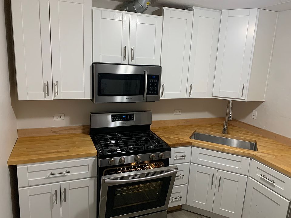 Updated bathroomButcher-block countertopNew kitchen cabinetsSpacious carport