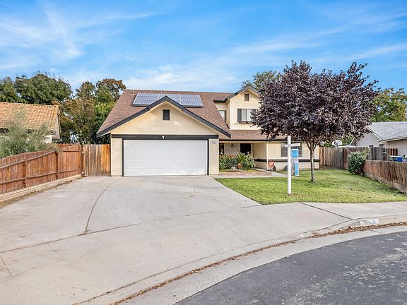 Be sure to view this lovely Clovis home! Fresh updates throughout make for an easy move-in. Arrive to great curb appeal! The home has leased solar for energy efficiency and the lot size is generous at 9,639 sf. There is plenty of room for a pool or elaborate landscape to entertain. The kitchen has new quartz countertops and shows well with new stainless-steel appliances. There are two living spaces with a front family room as well as a separate living room with a fireplace. The master suite is located upstairs and has a remodeled bathroom with an oversized shower stall with new tile work. The walk-in closet has built-in custom shelving. Neutral color tones and new flooring throughout make for an easy move-in. The home has a spacious enclosed patio that's suitable for a lounging area or even a home gym. All this, plus a great location near plenty of shopping options and within award winning Clovis Unified School District.