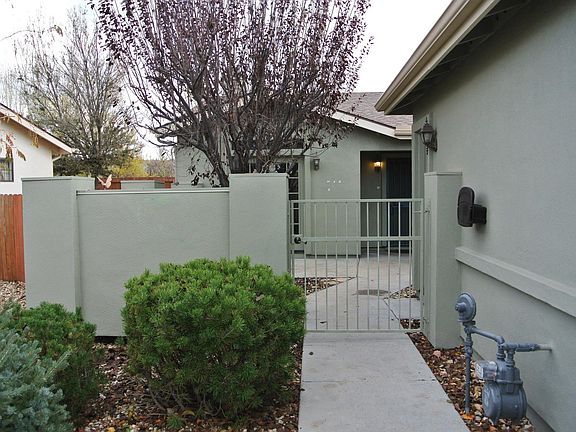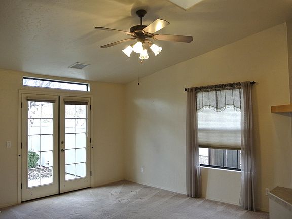 Super location/floor plan in sought-after Courtyards at the Gardens! SELLER IS WILLING TO CARRY THE LOAN W/20% DOWN SAVING $$ ON LOAN FEES! Lots of privacy, front fenced courtyard & back yard! North/south exposure! Longer, level driveway! Open floor plan w/vaulted ceilings, skylight, fireplace in living room! Tile floors in entry, kitchen, baths, 2nd bedroom. French doors to front courtyard & rear yard w/apple & peach trees! Backs to open space! Spacious dining area + breakfast bar, pantry, nice appliances, newer dishwasher. Refrigerator included! Roomy master bdrm, double closets, bath w/tub & shower. Washer/dryer included. Main bath has dual sinks, shower, skylight. Enjoy all of the amenities of this gated, 55+ community! Close to shopping & walk to Fry's Grocery! NOW VACANT & REDUCED!!