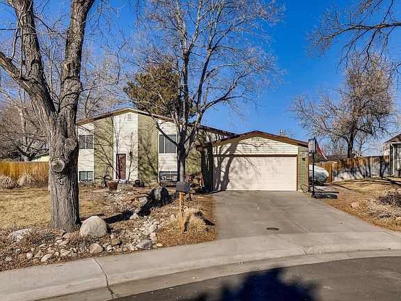 Welcome to this gorgeous home with an exquisite yard in a quiet cul-de-sac. You'll love the beautiful interior with baths completely remodeled and a kitchen that has Merlot cabinets, quartz countertops with in-laid sink, wood floor and eating space that overlooks the family room with a gas fireplace. The refrigerator is new stainless steel and sits next to a smooth top stove and microwave. There are 4 bedrooms and a huge rec room with extra storage and laundry room off the side. There is also newer carpeting and laminate flooring, newer paint, central A/C and vinyl siding along with a sprinkler system, grape arbor, raised garden, 2 utility sheds, lush green lawn with some xeriscaping, covered patio, 2nd open patio, firepit and playset area for kids. This a a beautiful, well done home that has been lived in with lots of care and love!