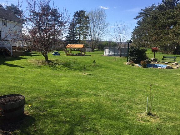 Beautiful large country home! Interior features- hardwood floors, 2 laundry rooms, updated kitchen & bathrooms, formal dining room, additional heat sources (coal, electric and propane fireplaces). Updated vinyl windows, 2 full baths on each level, and spacious bedrooms. Exterior features- new architecture roof (2021) on home and each rental, vinyl siding, pool, back patio, side deck, large 2.73 acre yard. Detached, new 28X42 2 car garage with truck doors, side entrance doors, lights and electric, fully insulated, loft and much more. Attached 1 car garage, fenced in area for animals or children. There is also rental income! With it's own private driveway leads to 3 mobile homes, rented out for 7 years. Mobile homes have new roofs, new floors some new windows and doors. Centrally located to all of the wineries at Keuka and Seneca lake!