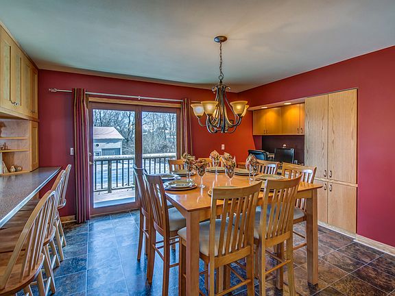 This home has an open floor plan with custom cabinets thru out and will make a great entertainment house all year long. Privacy bushes and trees surround this home , a full finished basement with wet bar and a wood burning stove that can warm most of this home when being used. There is a two stall attached garage, and an even bigger hobbiest and hotrodders garage that fits one RV and 4 cars with plenty of space to work around. Just storing cars could fit more. This home is 5 minutes from any store, gas station, park, or 690 and the thruway. Does not reflect the star exemption