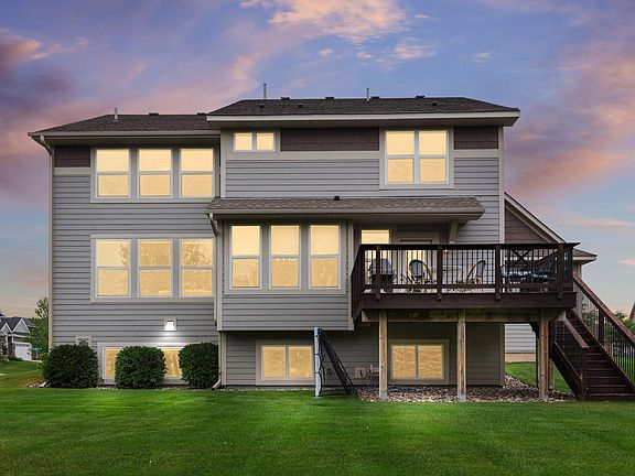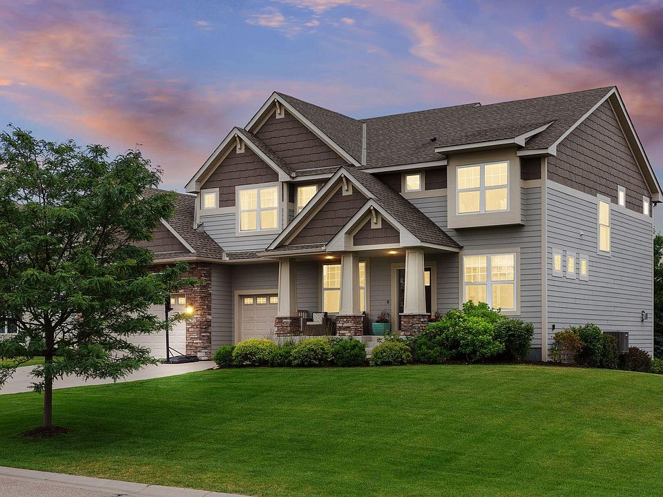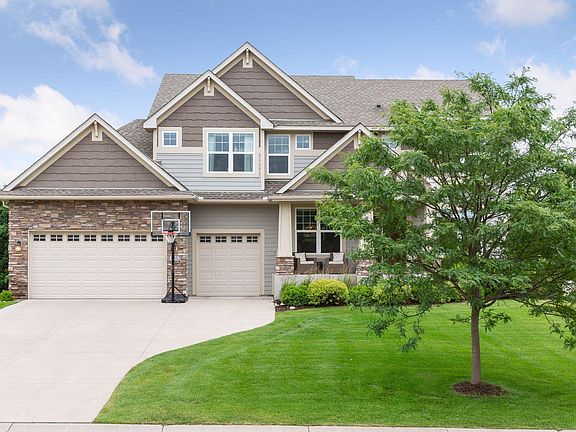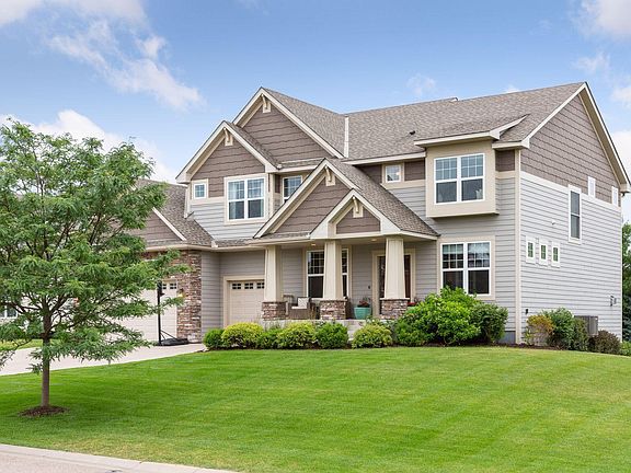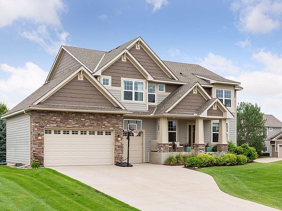 Beautiful 2-story nestled on a large corner lot on a quiet cul-de-sac in Ridgestone. High-end amenities & details incl enamel trim & cab, pre-finish engineered flooring, French doors into office, box up ceiling detail in foyer, custom built-in dual office desk, knockdown ceilings, fireplace w/stone surround, built-in media cntr, granite counters, s/s appl, tile backsplash, pantry, beverage cntr w/fridge, built-in mudroom bench w/ wood panel, new custom vanity w/ marble, 2 lvl of new carpet 2021, wrought iron railing, large upper lvl laundry/craft rm., jack-jill bth & private ensuite, primary bed has box up ceiling detail w/soaking tub & oversized shower, all bedrms w/walk-in closets. The l/o LL offers a gas frplc w/stone to ceiling, media wall, game area, full bar w/quartz counter/2 fridges/tile backsplash, home gym or dance studio, 5th bed & ¾ bath, 2021 fresh paint, heated garage, concrete drive, add. landscaping, roof 2023, updated lighting. The jewel of the neighborhood. A MUST SEE