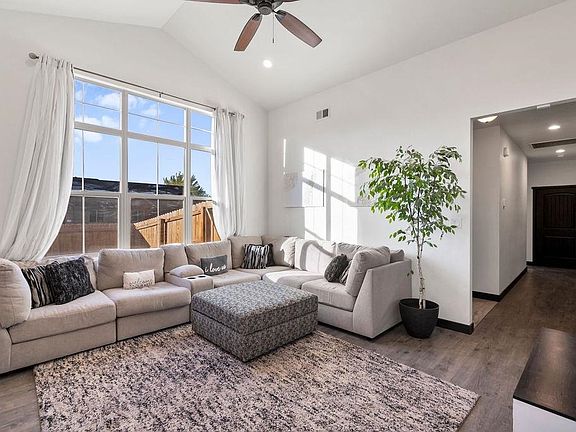 The welcoming front door brings you home! You will love the bright and open living/kitchen and dining area with vaulted ceilings and huge windows with natural sunlight as well as the dark trim and rustic barn wood look. This home is wonderful for entertaining with the large island and sliding glass doors to the patio. All stainless kitchen appliances are included. The spacious and luxurious master suite has a large double sink and a huge walk in master closet. This home also boasts of a new solar panels which keeps monthly utility payments low. Don't miss out, call for details.