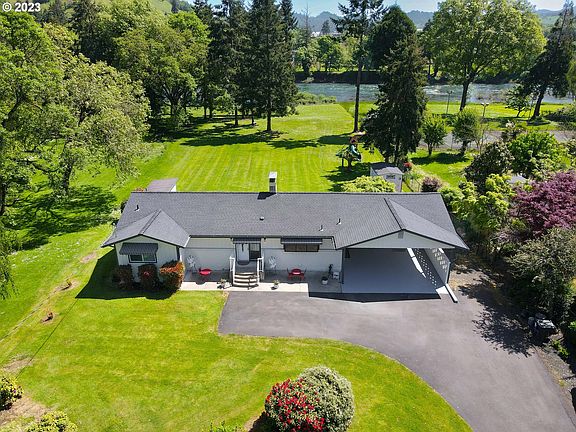 You will love this wonderful North Umpqua Riverfront home on two level acres with irrigation rights and gentle river access! This beautifully maintained, well cared for two story home with 2976 SF has 4 bedrooms, 3 baths, plus a family room with two bedrooms on the main floor. Walls of glass reveal show-stopping river views throughout this spacious home. The centerpiece is the relaxed and inviting country kitchen with two-sided wood burning fireplace opening to both the kitchen and the living room. The kitchen features lots of light, an island with an eat bar, under counter lighting, abundant counter space, two ovens, perfectly built in pantry, and pull-out drawers. The primary bedroom suite has a jetted tub and double vanities. The spacious family room opens onto a covered patio and hot tub with sensational river and greenbelt views. This amazing property has an attached 768 SF Carport with a shop below the covered view deck. There are two equipment sheds. This treasured riverfront home offers easy river access to enjoy swimming, fishing, boating or just relaxing and enjoying this ultimate riverfront lifestyle. Call to schedule your viewing today!