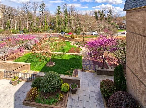This is your chance to live in the exclusive and very private, Parkwood Knoll complex so close to Uptown CLT. Brand new interior paint and carpet! Secure bldg. w/gated garage and 2 assigned parking spaces. One level living from garage to condo. High-end finishes abound with 10ft ceilings, 8ft doors, heavy moldings & built-ins. Master BD is full of natural light and leads to luxurious master bath. Whirlpool tub, tiled shower, dual vanities, & WIC with storage system. Kitchen overlooks living room and has tons of counter space, gas cooktop & GE Profile SS appls. Living room features a gas log fireplace and built-in bookcases. Covered terrace w/in-ground gas grill, power, hose connection & ceiling fan. Storage unit in garage. Immaculate grounds. Walk to Freedom Park.