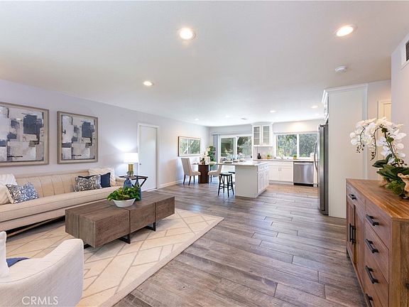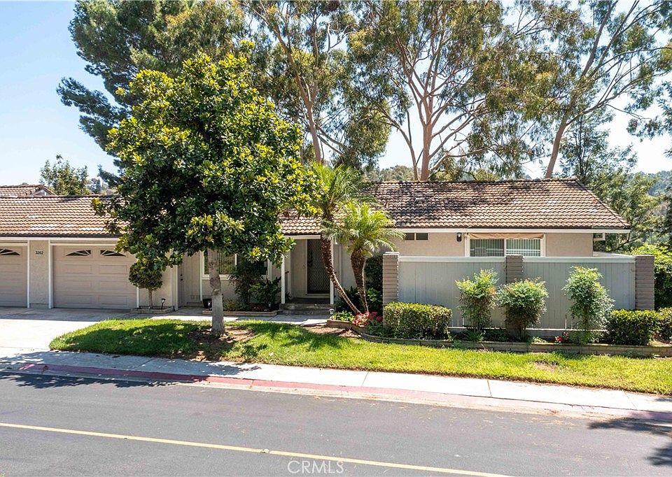 This exquisite 3-bedroom, 2-bath condo is perfectly situated on an elevated end unit lot, which boasts beautiful panoramic views of trees, greenbelts, especially from the patio/balcony to help take in the breathtaking beauty of nature that overlooks the hills. This home has recently been remodeled with tasteful neutrals throughout. This Casa Ariba floor plan offers a larger one-car garage with built-in storage cabinets with nicely painted floors. As an end unit, you can enjoy the views from every room! This home boasts recessed lighting, newer central AC and heating, and wood-like tile flooring with high baseboards, dual pane windows, stone countertops, beautifully tiled shower surround in the bathrooms and so much more. The open-concept design allows ample natural sunlight to flow in as well as plenty of shade from the outside trees. The kitchen features elegant wood cabinets, stainless steel appliances, desirable light granite countertops, and a spacious island. The master suite includes a luxurious bathroom with a large walk-in shower, dual vanity sinks, and a sliding door leading to a private courtyard with a retractable cover. Laguna Woods Village is a premier 55+ community offering a private 27-hole golf course and a 9-hole par three executive course exclusively for residents and guests. Enjoy over 200 social clubs, horse stables, and trails, 5 swimming pools, 7 clubhouses, lawn bowling, tennis courts, pickleball, a world-class woodworking shop, a garden center, and more. Close to Laguna Beach, renowned for its stunning beaches, art galleries, and fine dining. Embrace the lifestyle you've always dreamed of!
