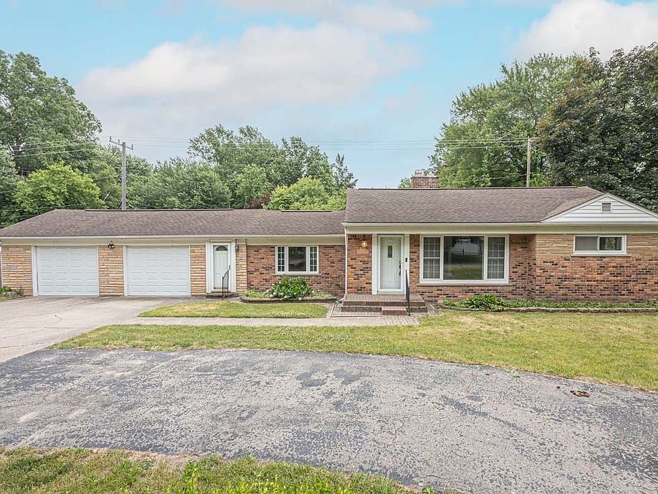 This brick ranch home is a true gem, offering the perfect blend of comfort and style. Nestled on a corner lot with a spacious .72 acre lot, and a convenient circle driveway that leads to the front entrance. check out the well cared for fruit trees and an oversized shed on this sprawling piece of land. As you enter the home, you are greeted by a spacious living room with a cozy gas fireplace and a built-in workspace, perfect for those who work from home. The living room also features large windows that let in plenty of natural light, creating a warm and inviting atmosphere.