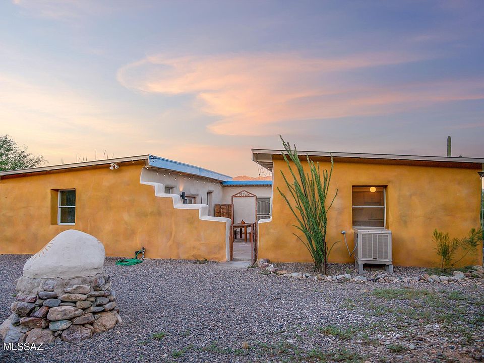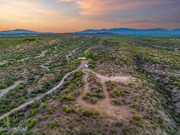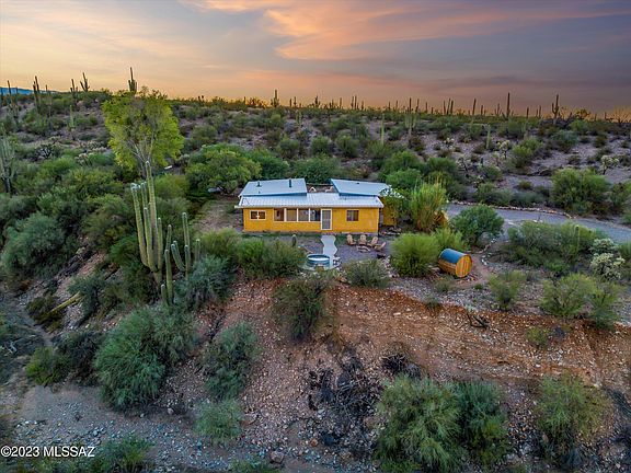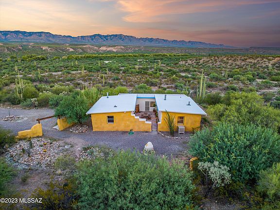 Fabulous 7 acre getaway 40 minutes outside of Tucson, with absolutely magnificent ''Best of Arizona'' views! This tastefully updated energy efficient custom straw bale home is nestled within a forest of gigantic saguaro cacti, and sits upon a private hilltop to take advantage of the panoramic mountain views. On the grid with a paved county road to the property, this home is ready to become your tranquil escape from city life. The private artesian well provides flowing water, and other features include a metal roof, all appliances (including interior washer / dryer), polished concrete and tile flooring, wood burning stove, outdoor cedar sauna, small swimming pool, garden area with raised beds, and a concrete driveway. Acreage includes 4 total parcels for endless development opportunities