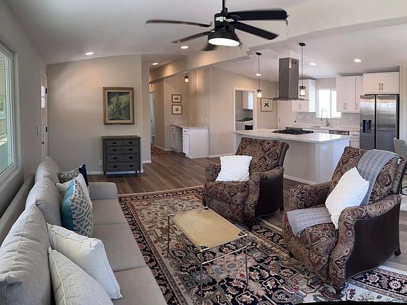 3 bedroom and 2 bathroom completely torn down to the studs remodeled home. This home is stunning with all of the high end finishes that you could want. Starting from the curb everyone can admire the very beautiful desert scape on new drought tolerant irrigation. The property is enclosed with new white vinyl 6 foot fencing with gate access on each side. There are 4 steps that lead to a unique enormous tiled patio for lounging and entertaining. The exterior also has new siding and double pane windows throughout. Enter into an open concept living/dining room and custom kitchen complete with a 9 ft island with slide in range. The cabinetry is white shaker with soft close drawers and doors. Built in under counter microwave, stainless 3 rack low decibel and lighted interior dishwasher, and new refrigerator. The countertops are Luna quartz with an oversized undermount Kohler sink. Adjacent to the kitchen is a roomy laundryroom with more cabinetry complete with a new washer/dryer set. In the public area the is also a wine bar with new undercounter wine chiller refrigerator. The 3rd bedroom has a double door entry, sliding glass door out to the patio and can be used as a den or office. The master is large with a walkin closet and private bath. The master bath shower is beautifully tiled and enclosed with a custom glass door. new drywall, insulation, plumbing, doors, electrical, roof, flooring, vaulted ceilings, minisplit 5 tons of AC/heat for cheap IID bills. A gorgeous value!