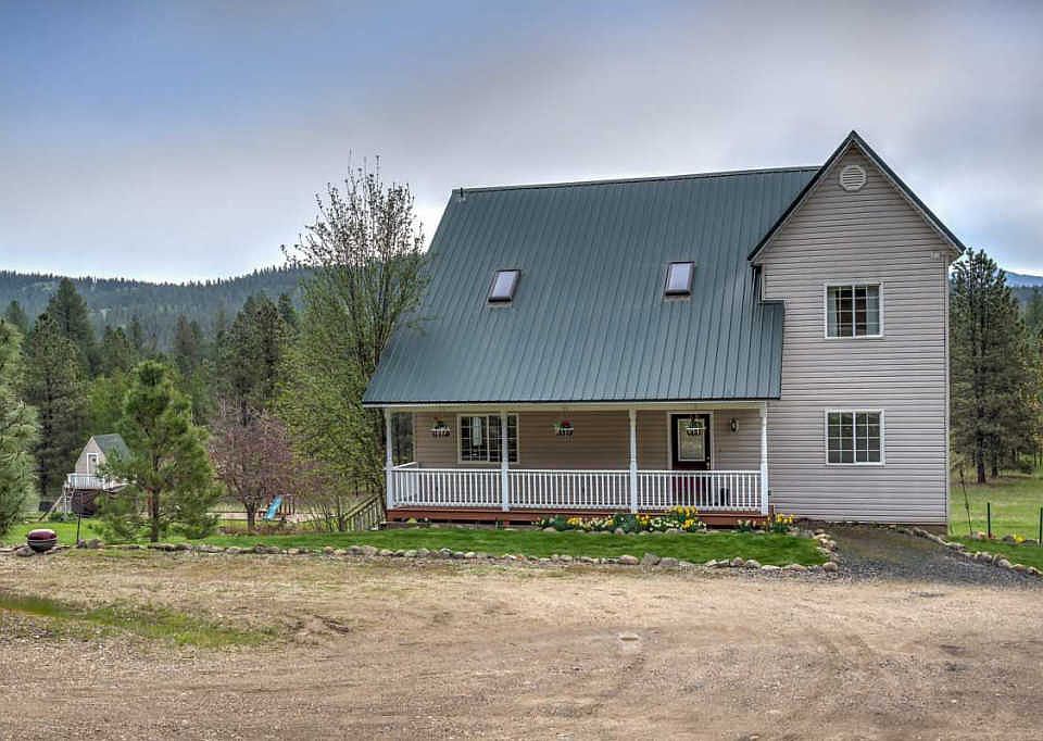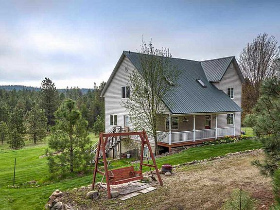 Desirable country home on 3.74 acres with views of Mt Spokane. Home features an open floor plan with tons of natural light & skylights, 4 beds, 4 baths, 2 offices, 3300 fin. sq ft, master suite, living room with 16 ft ceilings & catwalk, spacious kitchen & large laundry room. New heat pump & furnace in fall of 2017. Enjoy the walkout daylight basement with a huge family room & kitchenette. Outside enjoy the large patio perfect for entertaining, covered front porch, garden & level land with beautiful trees.