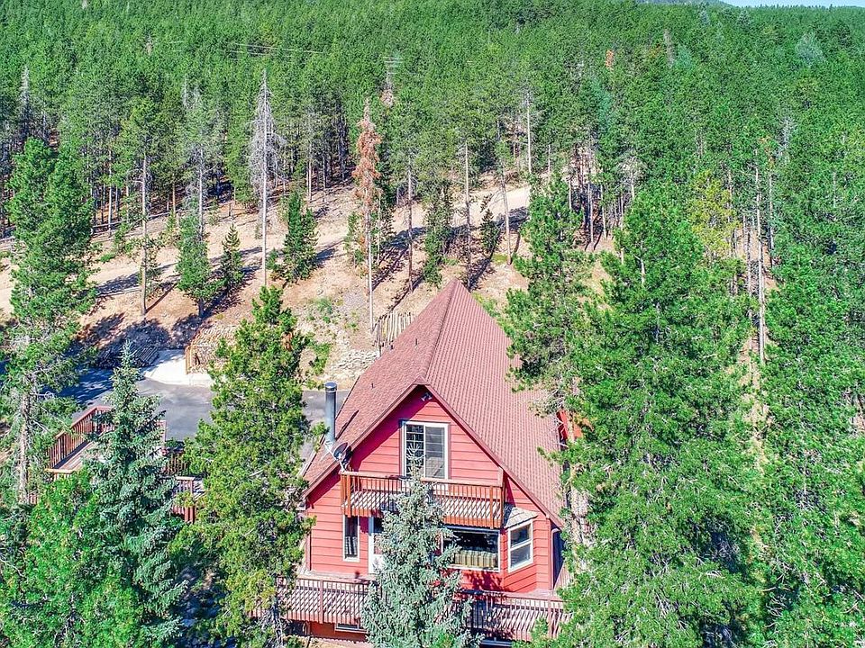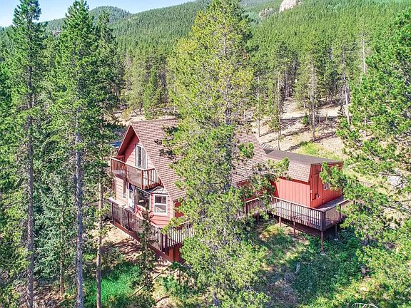 This is a must see on Shadow Mountain! The property boarders the Arapaho National Forest and is only .5 miles from Upper Maxwell Falls! You can enjoy the views anywhere from the wrap around deck, getting plenty of sunlight throughout the year. Spa ready deck! There is about 3 cords of wood left with the home to enjoy the fireplace this winter. The bus route picks up at the bottom of Lila Dr so the roads are plowed first in the area. Kitchen, living area, and master are all on the main level. Upstairs will take you to the other 2 bedrooms and a balcony with breathtaking views. This cozy 3 bed, 2 bath home has so much to offer!