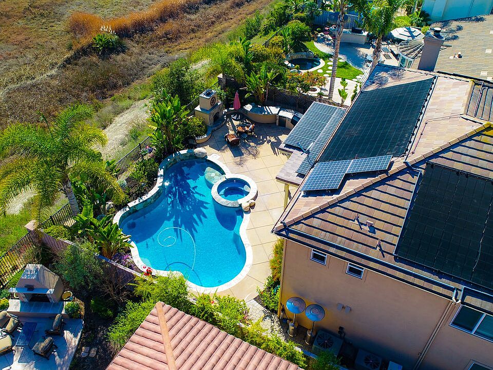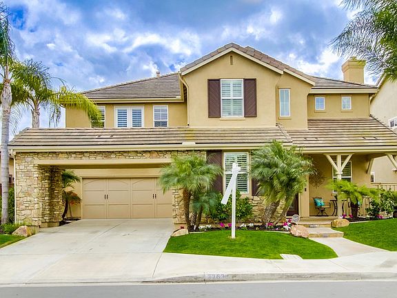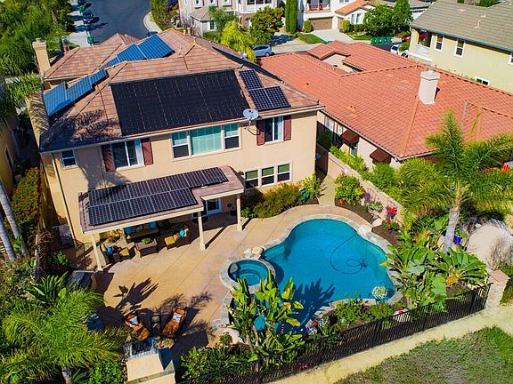 Stunning 5 bed, 5 1/2 bath home in the gated community of Tiburon. With 4419 sq.ft. of living space & a south facing yard, this home flooded w/ light. Upon entry you will be greeted by vaulted ceilings, shutters, new flooring & paint, wrought iron staircase, 4 car garage, dual A/C, surround sound, pool & home solar etc. The gourmet kitchen is tremendous in size w/ lrg. granite island, Wolfe appliances, sub zero refrig, lrg. pantry & butlers pantry. Entertainers yard w/ pool, spa, BBQ area, f/p & loggia.