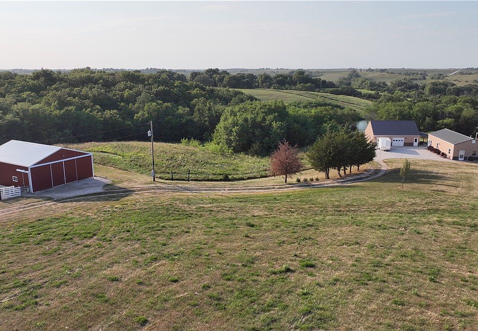 This must see acreage sits snuggled in some of the best Iowa views you can find! Secluded views, large stocked pond with rolling hills, also great hunting possibilities and a ready to go hobby farm perfect for your animal needs. The home (48x24) consists of one level with two bedrooms and one complete bathroom with the potential of a third bedroom. Open concept with a master that you can walkout. Beautiful kitchen with extra storage and a newly added sunroom that over looks the stunning views and pond! This home is well loved and cared for! Very clean! There is over sized detached two stall garage (30x36) steps away from the home. Main floor of the garage has a kitchen and a space for a shower and bathroom with a second level loft perfect for bedrooms for a guest house. The garage also has a walk out cozy covered porch (30x10) perfect for entertaining with stellar views! The garage is heated with a wood burner in a storage shed behind the garage. Last but not least, a recently added barn (36x30) was built perfect for a hobby farm! The fencing is in excellent shape. There is a loft in the barn that would make for great storage. There is roughly 1k in hay income on the farm. Call today for your private showing!