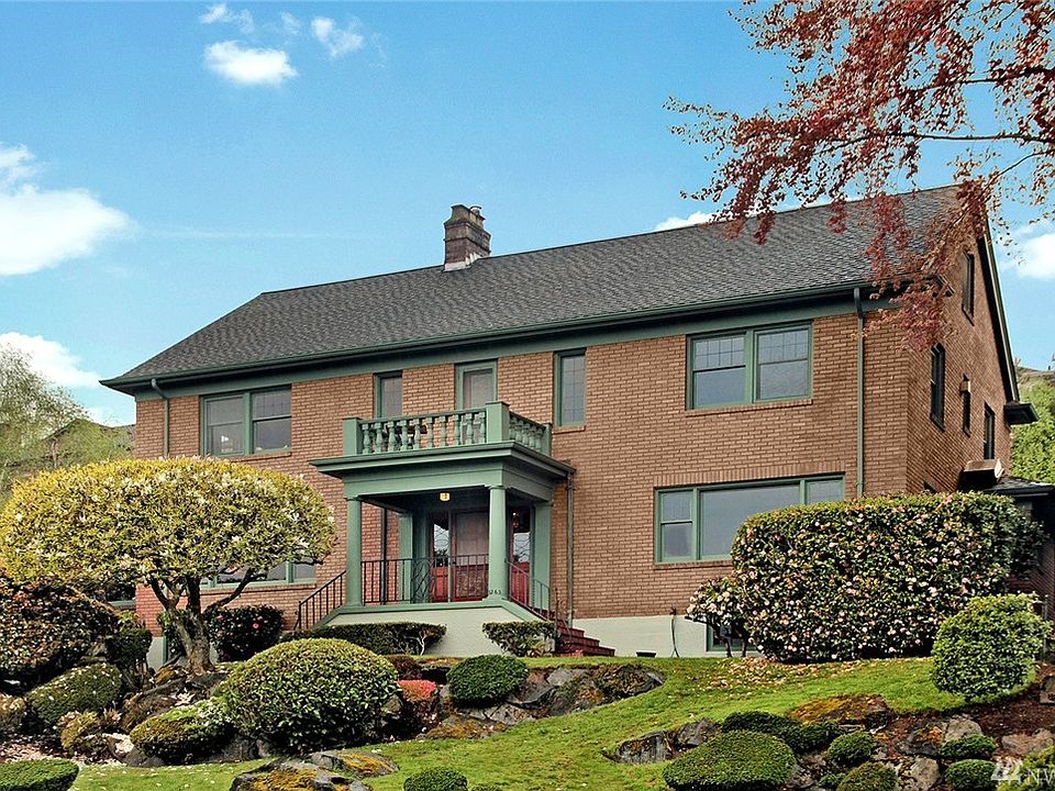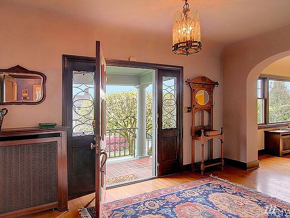Stately 1930 Mt. Baker classic w/views of lake, mtns & Bellevue skyline. Generous, light-filled spaces and evocative period detailing throughout this architectural beauty: top-nailed hdwds, leaded-windows, custom tile fireplace mantle, wall sconces & chandeliers, and solid mahogany wood-working are a few of the signature highlights of this elegant home. The kitchen is a masterpiece: Wolf, Sub-Zero, & Miele, texture & style! Use movie reel icon to view aerial video.