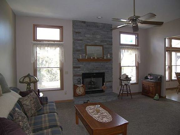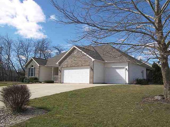Quick possession available! Spacious contemporary ranch with full basement and 3 car garage on a corner lot in The Dells. Living room offers tall ceiling and stone (gas log) fireplace, formal dining room, ceramic tiled kitchen with snack bar & breakfast area, master suite with private bath & walk-in closet. Partially finished basement with family room & home office area plus ample room for storage or to expand your finished square footage. Covered front porch, screened 13x19 rear porch, concrete driveway. Ceramic Tile
