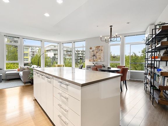 Get in the groove with this 1000sqft, 2 bed/2 bath & flex CORNER home at Polygon's Rhythm Building, just meters from the Kerr Street Pier, the Fraser Foreshore Trail, and wine/groceries at River District. Unit 203 enjoyed custom upgrades from Polygon's own design/millwork team at the request of the owner at completion in 2017. Fisher Paykel & Bosch appliances, gas range, custom entertainment wall built around a 55" TV, his/her closet with full custom slide-out mirror, and a large flex/pantry. The 9' ceilings and south-west corner exposure floods the home with light and air flow, and don't worry about heat because there's AIR CONDITIONING. Building has a full gym, a great party room, and allows pets and rentals. OPEN CANCELED. Home is gone.