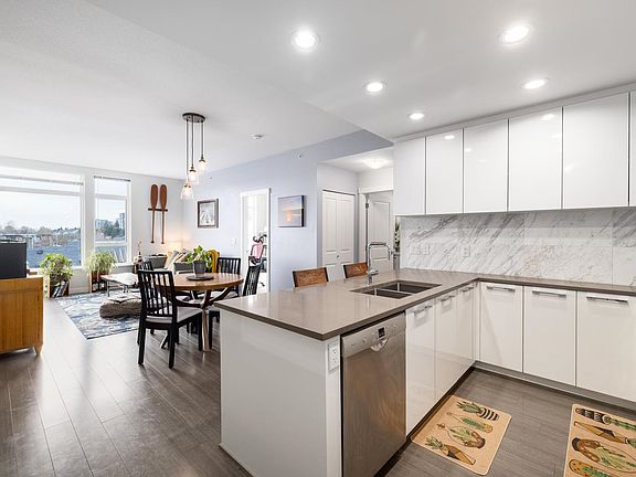 West-facing patio & top-floor unit!! This perfectly laid out 2 bed, 2 bath with a massive in-suite storage space is situated on the top floor of Rhythm by award-winning developer Polygon. Gourmet kitchen w/ Bosch and Fisher & Paykel appliances, radiant in-floor heating, imported marble tile backsplash, engineered stone countertops, spa-inspired ensuite. Open concept floorplan, bright feel. 5 min walk to all the amenities in the master-plan community of the River District. Clubhouse, exercise center, bike repair room, dog washing station and garden in building. Showings available Sat Apr 16 12-2pm ONLY.