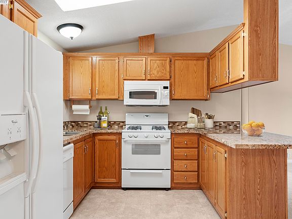 Beautiful Vineyard Estates over 55+ community manufactured home, with 2 full bedrooms AND a separate den. Very well maintained with new carpet and pad, interior and exterior paint, granite kitchen counters. Fridge, washer and dryer to stay. Stove/oven, microwave, new toilets in bathrooms, new vanity lights in bathrooms. Outside shed, and so much more. Great location and corner lot, opposite the park with Bocce ball, picnic tables and play area. Enjoy the front wood deck for sitting and with friends. All roof work done and completed. Light and bright. Kitchen has sky light. Inside laundry. Newer furnace 2019. Photos of interior are Virtually Staged.
