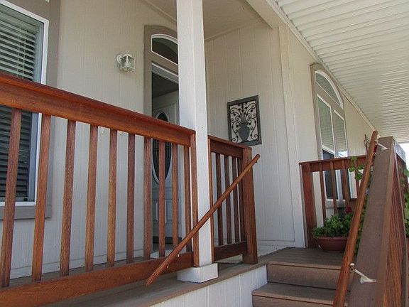 Approximately 180SF Wrap Around Porch Stair Lift For Groceries, Wheel Chair or WalkerSeller has just lowered price to $274,750 from $299,750! A $25,000 savings!! Now's the right time to buy this beautiful home. This resale manufactured home is OPEN DAILY 9:00 a.m. to 5:00 p.m.Resale 2007 Karsten Villa Manufactured Home. Quiet senior neighborhood with lots of resident activities and amenities. Manufactured home has been very well maintained and looks like new. It's located a short walk to the newly remodeled club house, pool, spa and sauna. This manufactured home has just had new wall to wall carpet and fresh paint on the interior. 3 Bed, 2 Bath, 1,980 SF (30 x 66) Approx. Vineyard Estates is a senior 55+ five star community located near downtown Pleasanton, CA. This is a land leased community, space rent is $995.00/Month Address: #58 Vineyard Estates, 3263 Vineyard Ave., Pleasanton, CA 94566Website: www.ferriscustomhomes.com Jack Ferris Cell: 925-858-2879 Note: This info deemed reliable but not guaranteed. All interested persons should independently verify accuracy of above information. Prices do not include government fees, taxes, finance charges, dealer fees, insurance or escrow. Photos and floor plan does not depict the exact home details.Resale Manufactured Home Amenities:FORMAL DINING ROOM Chandelier in Dining Room Sliding Glass Door To Front Country Porch KITCHEN Stainless Steel Appliances, 25 CF Side-By-Side GE 30" Gas Range Solid Surface Corian Countertops & Self Edge Solid Surface Backsplash Cast Acrylic Sink with Single Lever Faucet Adjustable Shelves All Overhead Cabinets Madison Alder Hardwood Cabinetry Self Cleaning Gas Range, Dishwasher, Microwave/Hood Fan Combo, Corner Kitchen Sink Canned Overhead Lighting Pendant Lights Over Snack Bar Desk Etched Glass Pantry Door Kitchen Island MASTER SUITE 9 High Ceiling with Ceiling Fan Double Doors Into Master Suite Ceiling FanMASTER BATH Solid Surface Corian Countertops & Self edge Solid Surface Backsplash Dual China Lavy Sinks - Dual Control Faucet Medicine Cabinets Elongated High Rise China Lavy Toilet Bowl Brushed Chrome Towel Bar & Paper Holder Handicap Wheelchair Accessible Shower & Sink Linen Cabinet Double Doors Into Master Bath Linoleum Flooring GUEST BATH One Piece Tub/Shower Combo Linoleum Flooring Elongated High Rise China Lavy Toilet Bowl Solid Surface Corian Countertops & Self Edge Solid Surface Backsplash China Lavy w/ Dual Control Faucet Medicine Cabinet Elongated High Rise China Lavy Toilet Bowl Brushed Chrome Towel Bar & Paper Holder LIVING ROOM Bright & Airy 9 High CeilingCeiling Fan LAUNDRY/UTILITY ROOM Storage Cabinets, Hanging Pole Washer & Dryer Hookups Linen Closet OTHER FEATURES 2-Car Carport 30 Yr. Architectural Shingles Fiberglass Exterior Doors Fiber Cement Vertical Siding Cathedral & 9 High Flat Ceilings (per plan) Low E White Vinyl Dual Glazed Windows 2" x 4" Interior Walls, 2 x 6 Exterior Walls 3" Baseboard Throughout Cornice Boxes with 2" Faux Wood Blinds Throughout Toe Kick Heat Registers In Wet Areas Picture Frame Windows Insulation: Ceiling, R-38 Ext-Walls, R-19 Floors, R-11 High Efficiency Furnace, 40 Gallon Gas Water Heater "Rocker" Light Switches Designer Oval Glass Front Door Coat Closet Madison Alder Hardwood Cabinetry Throughout Ceiling Fan In Living Room Vineyard Estates Offers Their Residents The Following: (One Homeowner Must Be 55 Years of Age) Newly Remodeled Club House & Pond Community Pool, Hot Tub, Sauna, Activities Dance Floor, Pool Tables, Card Tables, RV Storage Insignia #RAD 1460261 & 1460262 Serial #SAC003326CA A/B Model # KS66001Z NO REALTOR PARTICIPATION Licenses Held By Ferris Financial Group, Inc.:Real Estate Brokers License #00519158 Real Estate Officers License #01239759 Dealer License for Manufactured Homes DL 1142441 NMLS ID #217173 ID #518885 Cal Vet Certified Lender