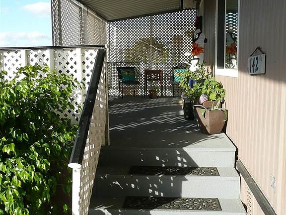 Senior living in the heart of Pleasanton! Beautiful and very well maintained unit in move-in condition. Enjoy one story living in this upgraded two bedrooms, two full baths home. Open floor plan with living/dining room combo. Laminate flooring throughout living area, wall-to-wall carpeting in bedrooms. Built-in hutch in dining room. Dual pane windows throughout. Newer front and back door. Well equipped kitchen with gas stove, microwave, newer stainless steel sink and faucet. Good sized master bedroom with two windows, walk-in closet . Adjoining remodeled master bathroom. Second bedroom with large closet. Remodeled hall bathroom. Indoor laundry room with storage cabinets, newer dryer and newer Energy Star washer. Floor on front porch redone 2017, Copper plumbing, Water Heater 2010. Roof resealed 2010, Furnace and AC unit replaced 2012, Home re-leveled 2012, Extra wide carport, Redwood deck added 2013