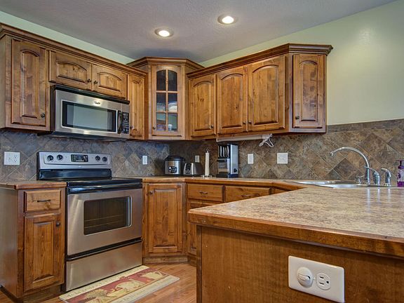 BRAND NEW CARPET THROUGHOUT!!! Warm earth tones encompass this fabulous walkout basement home. It features 5 bedrooms, 3 full bathrooms, 2 living areas and both Formal & Informal Dining. The kitchen features a raised breakfast bar, and lots of cabinets. The upstairs living room offers a tray ceiling and gas fireplace. The master bathroom includes a jetted corner tub, walk-in shower, double vanity and very spacious closet. The huge family room downstairs has a gas fireplace and large wet bar. The wet bar includes a dishwasher, full size double sink and space for a microwave and full refrigerator. Extras include a spacious 11x17 wood deck, covered patio, irrigation system, garden bed, numerous closets & large walk-in closets in every bedroom. The third car garage is extra deep for more