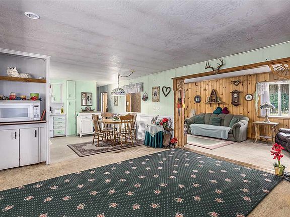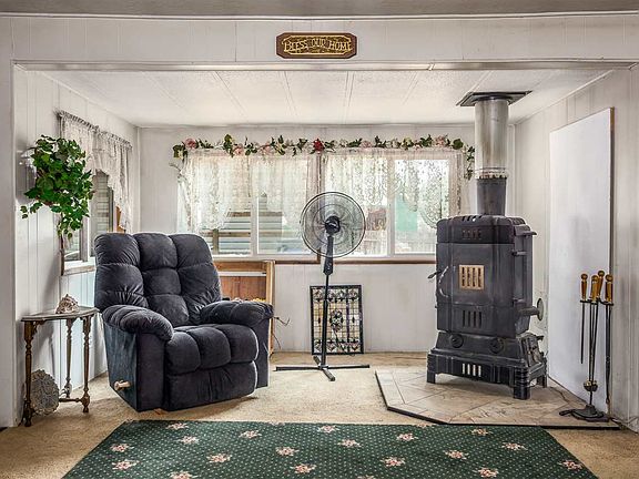 The addition on this single wide mobile makes it both roomy and cozy. Home has 4 bedrooms, 2 baths, a living room, a family room, and a wood stove. Covered carport and shop sit on this large property which includes 2 lots. Close to downtown and the lake.