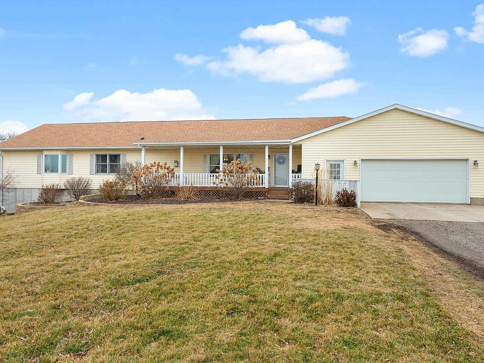 This beautiful 4 BR - 3 BA ranch home sits on over 3 acres. Enter the grand living room w/ corner fireplace, which leads into the formal dining & kitchen, with newer countertops and floors. It boasts a glorious family room in the basement complete with home theater system (if desired), & a walk out; a refreshing above ground pool w/ newly stained deck; an enormous master suite w/ a walk-in closet that could be converted to a nursery or office, there is another storage space in the master that could be a closet, but is now used as a small office, 7.9 x 4.6. This home is high quality, it has so much space & so many wonderful updates! Seller reserves the right to the smaller shed on the hill, the 13 x 13 shed near the house will stay. Basement freezer & mudroom refrigerator stay with house.