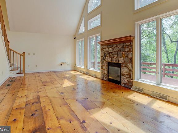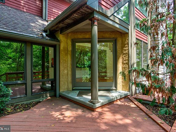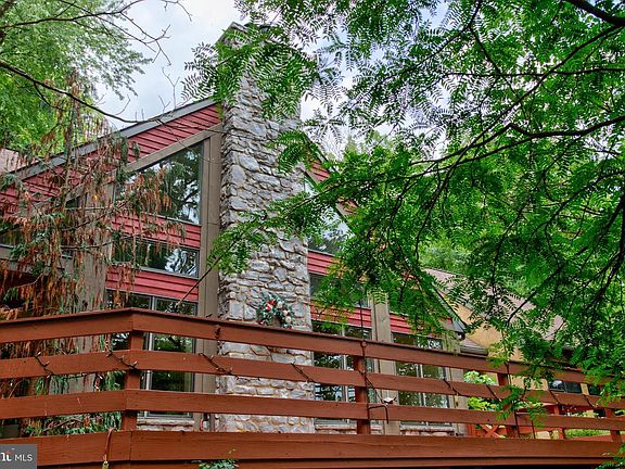 One of a kind property! Heavily wooded lot surrounds a beautifully designed and appointed home on a 1.98 acre lot. As you walk in the front door the open floor plan greets you with soaring vaulted ceilings, wide plank wood floors, sun room, laundry and a beautiful kitchen. A private first floor wing houses the 1st floor owners suite, office with large windows and high ceilings, private deck off the bedroom, en-suite bathroom, large custom walk-in closet and a nursery/4th bedroom/craft room. The second floor has two additional bedrooms, full bathroom and a walk-in cedar closet. The balcony from the second floor has amazing views of the wooded lot...it is literally like living in the canopy of the trees. As you move to the walk-out lower level you will find a large family room with a stone fireplace, two sliding doors that open to a concrete patio, workout room and a full bathroom. The outdoor spaces are park like with the main deck runs across the entire front of the home and a lovely private deck off the owners suite is perfect for a little quiet time. Groomed paths to the rear of the property are perfect for a little roaming and fire pit gathering with friends. or stroll on down to Back Run for a cool dip in the creek or a little fishing. There are two sheds for plenty of storage. This property is serviced by a private road and bridge across Back Run. This is truly a special home!