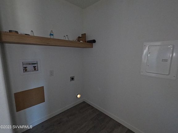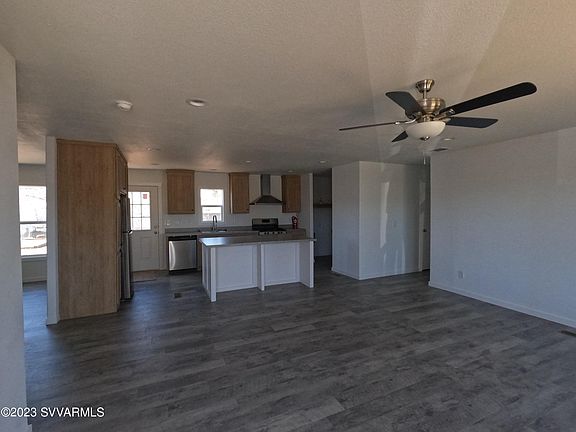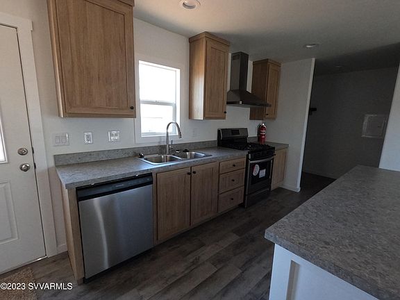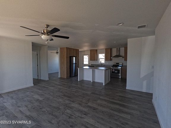 Camp Verde, Brand new 2022 5-bedroom home on lot with mature Mesquite and Juniper trees and mountain views. This home has space! Living room and kitchen are truly the heart of this home. Kitchen has island with breakfast bar and separate dining room. Washer and dryer area shares space in what could be a great walk-in pantry. Stainless steel appliances. Split floor plan. Master has oversized walk-in closet and bath has dual sinks and room for a vanity and linen closet. Three of the guest rooms all have walk-in closets and there is a flex room with its own entrance. Additional linen closet for extra storage. Recessed lighting throughout except bedrooms. Property is fenced on 3 sides. Storage shed in back yard and plenty of off-street parking.