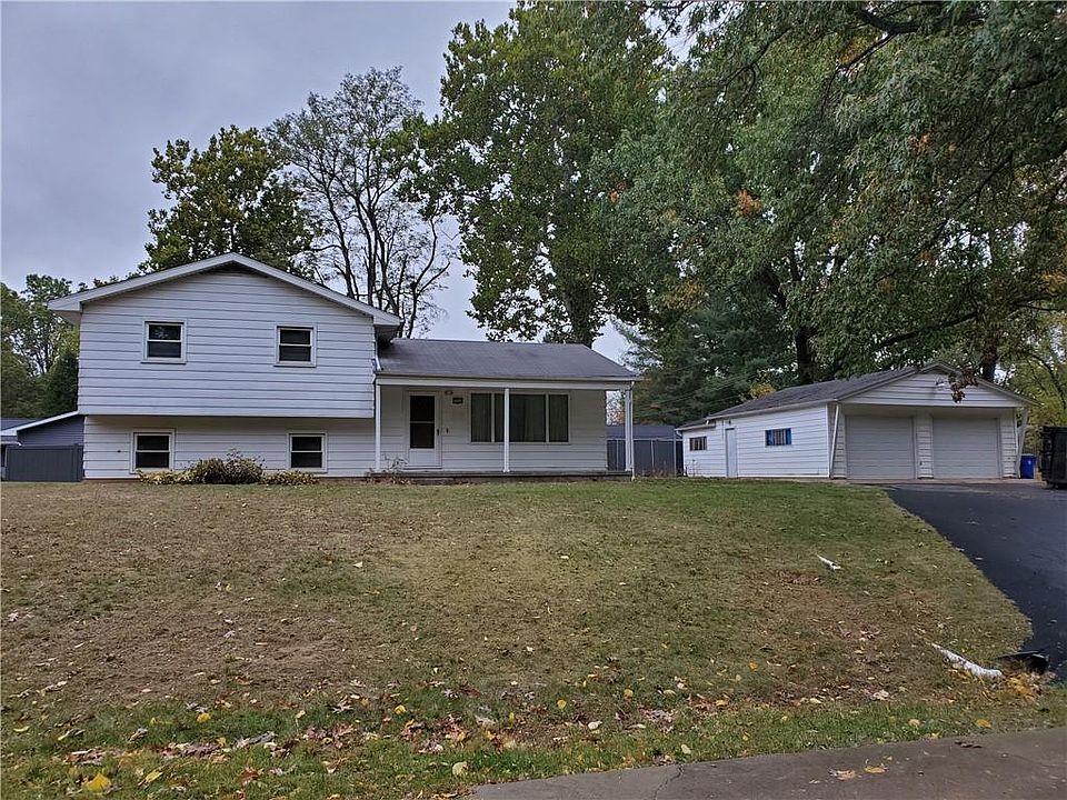 Trust. Selling AS-IS. Great investment potential. Located on Decatur's Southeast side on a large corner lot. Big 2.5 car garage with workshop potential. Circle Drive. Tri-level with a basement. Replacement windows. Appears to be hardwood floors under carpet in bedrooms.