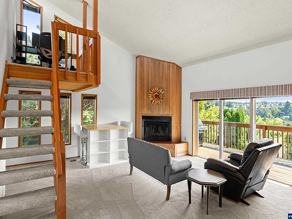 Charming Mid-Century Modern home with great views! Original appeal with real wood accents! Fully equipped kitchen with built in glass top stove and oven, ample cabinet space and pantry. Wall of windows framing lovely view in family room with expansive decks. 7X7 loft built above family room perfect for office. Large bonus area downstairs with 2 bedrooms. Spa-like full bathroom with sauna and spa tub downstairs. Fully matured low maintenance beautiful yard. Shed under the home in backyard - great for storage