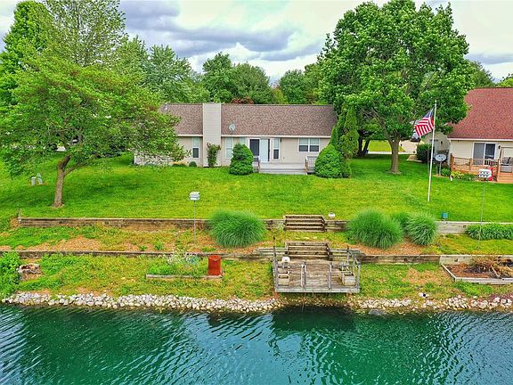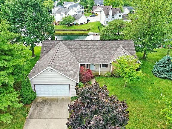 Great WATERFRONT 3 bedroom 3 bath home in Hunters Crossing. Enjoy the water from either the large dock or the composite deck off the breakfast room. This beautiful ranch has a split bedroom floor plan with the master bedroom having a walk in closet, separate shower & whirlpool tub. The large living room has vaulted ceilings and a wood burning fireplace. The kitchen and breakfast room combo with sliders giving access to the deck. The home has main floor laundry. The lower level has a large family room and the 3rd full bath. Helitech is repairing crack in the basement wall on 6/1. There is not an HOA, but take up a donation for the maintenance of the lake.