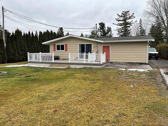 Cozy Ranch style home just minutes from town. 3 bedroom, 1 bath offering an attached garage and bonus 2 car detached garage,large yard, updated kitchen, new water heater and pressure tank in 2022, newer roof and windows along with brand new deck put on with stamped concrete pad in October 2022. Brand new flooring installed in 2021! Home includes matching appliances installed in 2020. This beautiful home sits on .52 acres in a desirable area just 2.9 miles from town!