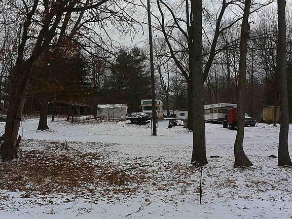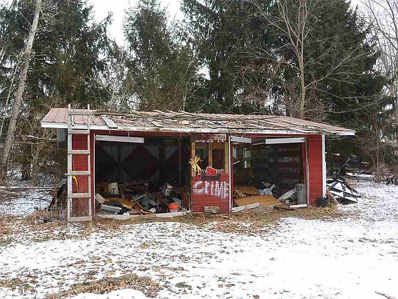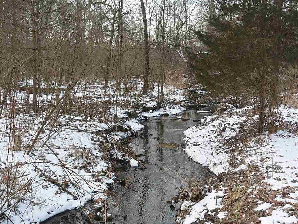 about 5 acres with a few small outbuildings, a small pond, woods, and two creeks! Lots of wildlife. All outbuildings are for storage only. You must have an appointment to walk this property.