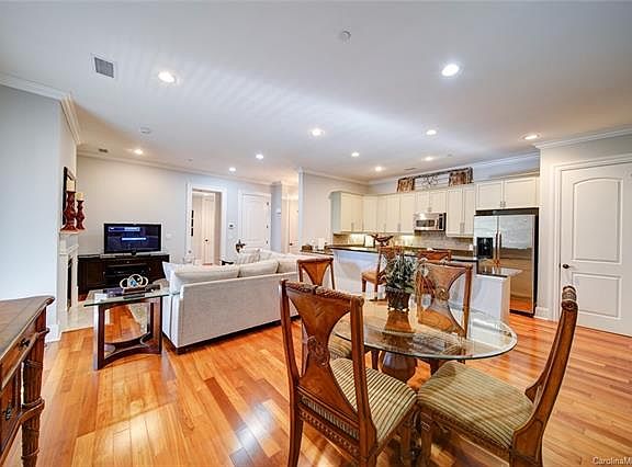 Nestled among mature trees lining Park Road is a scenic French Provincial-style condo where this immaculately maintained 1,700 SQF second floor 2BD/2.5BA unit is. Close to Uptown Charlotte, lake and gardens at Freedom Park, shopping in nearby Dilworth, and walking distance to fitness and childcare. Close to well-rated schools. The stylish unit features luxury accents including 10 ft ceilings and custom crown molding. The open concept living area includes an inviting gas fireplace and patio access. The chef kitchen features S.S. appliances, granite countertops, a staggering island, and a pantry. A cozy den is a perfect home office. The beautiful master suite features corner windows, private patio access, WIC, and a stunning 5-piece ensuite featuring granite double vanities, a glass shower, a jet soak tub, and a WC. Entertain indoors and out seamlessly with a double-sided fireplace and gas grill on a private terrace. Property features manicured lawns, relaxing views & walking paths.