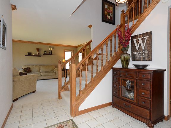 Beautiful Trustway Colonial Home loaded with detailed finishes, abundant storage and many updates and located of a quiet cul de sac and has the Deer Creek Conservancy as its backdrop. The home has an amazing floor plan that is perfect for entertaining as well as intimate gatherings. You relax in your private backyard, cozy up to the fireplace, or stretch out into the formal living space and enjoy French doors for added privacy. The kitchen is a show stopper with plenty of maple cabinetry and Quartz counters, snack bar and space for your everyday table. The dining room is complete with a mosaic chandelier. Upstairs, you will find a large master retreat offering vaulted ceilings, huge walk-in closet and spa bath with double vanity, shower stall and jet tub. The second and third bedrooms are generous sizes with vaulted ceilings and large closets. You will enjoy the built-in desk space and shelves in the loft area, maximizing on all the space in the home. The lowers level has a finished rec room and storage side with work bench and built in shelving. The professional updates include: Complete roof replacement, custom shelving, basement work area, water heater, all windows and patio doors, garage door and opener.
