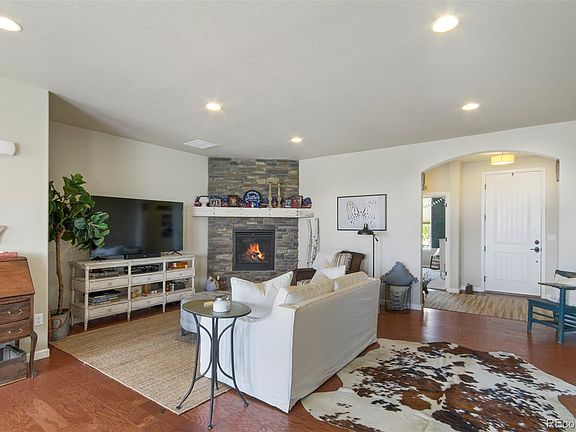Looking for some elbow room?! Imagine owning 5 acres of pristine Colorado horse property within 2 miles of all the town amenities you need! Check out this rare ranch that features mountain views from the front and relaxing rolling hills from the back. It's time to discover a light and bright open floor plan, giant sized ceilings, loads of windows/plantation shutters, modern lighting, up to date paint, main floor study, high speed internet, and gleaming hardwood floors throughout the main living area. The great room greets you with a newly custom mantled stoned fireplace that allows a natural flow into your dream kitchen that includes a 6 burner gas cooktop, double oven, granite slabs, a fully travertine tiled backsplash, soft close maple cabinets, a deep pantry, and a sunny breakfast nook. Directly adjacent to the nook is the private master retreat with a massive walk-in and it's own en-suite five piece bathroom that's ready to go with double sinks, large tub, and an even bigger floor to ceiling/wall to wall tiled shower. Making entertaining a breeze with the walk out finished basement complete with 2 large well lit bedrooms, massive bonus room, another great room, a tastefully tiled full bath, and really allow the storage room you desire. Equipped with a chicken coop this property is turn key!