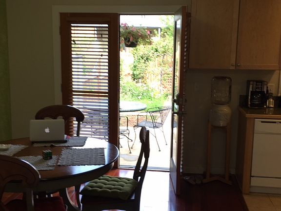 Best of all worlds here: low-maintenance condo living with large outdoor backyard for gardening and birding. Upstairs has two master bedrooms with a patio and great views and privacy from the neighbors. Fenced-in backyard has raised garden beds for planting food and flowers (compost bins included). Front has luscious trees, large park, mountain views, bike paths and more. Enjoy mountain views from upstairs spacious bedroom. House has been well-cared for and ready for move-in.