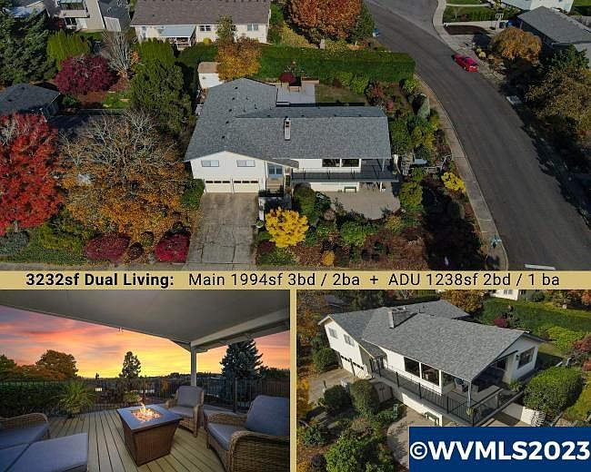 VIEWS for hundreds of miles! 3232 sf ft West Salem Home has DUAL LIVING! 1994 sq ft Main Fl: 306 sf bdrm suite, +2 bdrms, full bath, laundry rm, bamboo flrs, new carpet, kitchen, frml dining, living rm w/wood firepl, tall windows to take in the spectacular views & slider to new trex deck for more viewing. 1238 sq ft Furnished Basement: 2 bdrms, full bath, full kitchen w/gas range, living rm, frml dining, sep laundry, slider to lg cvrd patio. New roof 2020, 608 sf of new trex deck, hot tub, tons of storage!