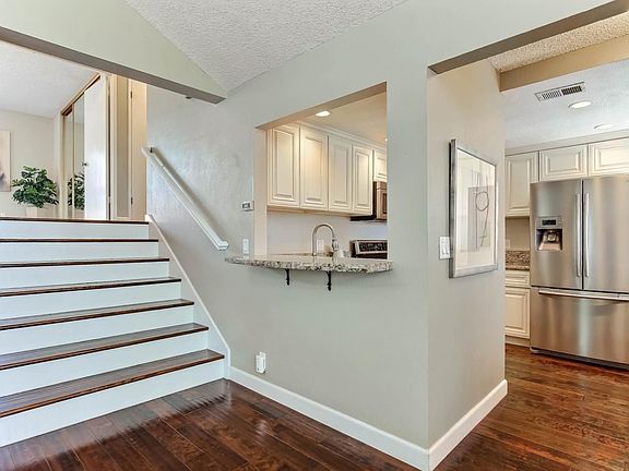 Majestically nestled in the trees on a corner, with a vaulted ceiling, and light and bright*With its own charming front deck/patio with front door entry, and entry door to garage, on same level*Remodeled kitchen with granite counters, stainless refrigerator & appliances, and recessed lighting*Updated bathrooms*Engineered hardwood floor* Central forced air furnace & central A/C*Plantation shutters*Dual pane windows*Mirrored dining room wall*New carpet in guest bedroom*Mirrored closet doors in both bedrooms*Utility closet with full size washer & dryer, included*Master bedroom balcony with storage closet* Garage storage closet*Automatic garage door opener*Additional one reserved uncovered parking space*Close to Waterford Park, transportation, light rail, shopping, & restaurants...
