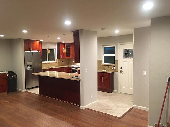 Full Remodeled Includes: Granite counters in Kitchen. Solid Wood Cabinets All new bathrooms Double pane windows 3/4 inch solid hardwood floors throughout (no carpet) Recessed LED throughout All new stainless steel kitchen appliances Dishwasher. Large side by side refrigerator Private / In unit- New Washer and Dryer. With Forced Air Heating- New Furnace 2 car garage Laundry closet with full size washer and dryer Garbage and water are included Central a:c