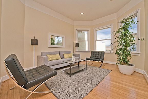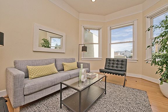 Top unit in a 2 unit Victorian conversion building located in Oakland's Dogtown neighborhood. The unit features a large master bedroom that walks out to wrap around deck. Radiant heating throughout unit. Bamboo flooring in kitchen, plusspace, dining, and living rooms. Updated kitchen and bathrooms equipped with subway tile. Skylights for added light. Plus space is perfect for an office or craft room. Laundry room with washer & dryer. Located near multiple freeways, shopping, and within close distance to BART. Radiant flooring Subway tile in kitchen & bath Deeded off street parking space Skylights Wrap around deck off of master Enclosed plus space off living room