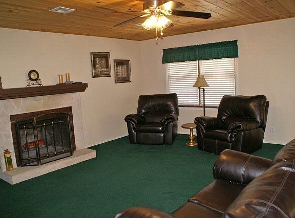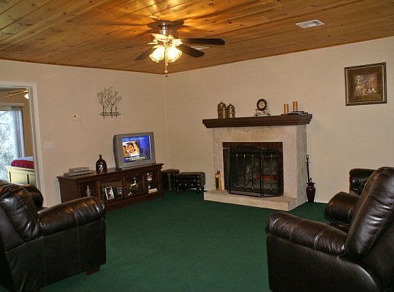 Great cabin or full time living. Newly remodeled in 2001--all new electric, roof, flooring, kitchen, baths. Beautiful wood floors, upgraded carpet. Living room has tongue and groove wood ceiling, a fireplace and 1/2 bath The kitchen is bright and fresh with access to back deck. Large master bedroom on main level and two guest bedrooms and bath upstairs. Front deck is 8 x 20, covered and has ceiling fans.--perfect for enjoyment. Large back yard over looks acreage. Extra large two car garage with st and up attic for plenty of storage.