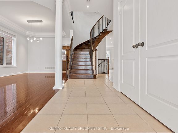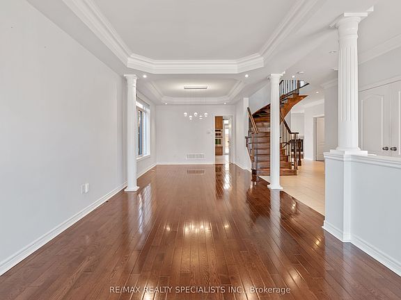 Grand living spaceProfessionally finished in-law suiteOpen conceptDecorative columnsCustom crown mouldingPot lightsSmooth ceiling