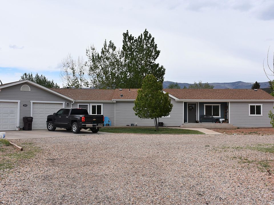 Spacious manufactured home with a two car garage. This home features 3 bedroom 2 bathrooms. It also features a wood burning stove, and a large front and back yard.