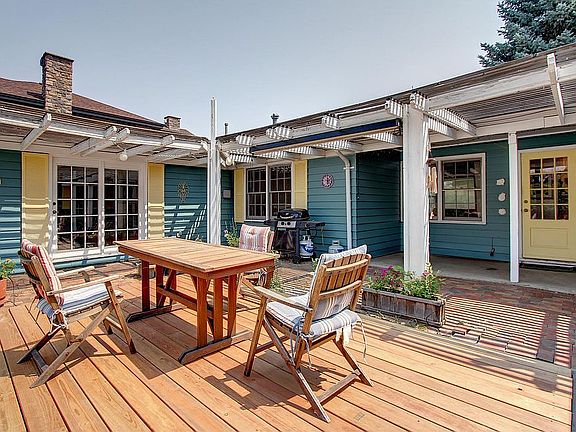 Beautifully developed 4-bedroom ranch style home in one of Denver’s great neighborhoods—University Hills. The location provides quick access to Hampden/285, I-25, and the Yale Light Rail Station, the High Line Canal and Eisenhower Park’s amenities. Inside, the rooms are bright and airy. Gleaming hardwood floors throughout the main living areas. Large Family Room with new hardwood floors, a working wood fireplace and adjoining full bath. A grape arbor off the family room provides passive cooling through the dense shade. A sunny home office/bedroom perches on the southeast corner of the house. The Master Bedroom is roomy with French doors to the backyard deck, a large closet and modern bathroom with its own water heater. Down the hall, two other bedrooms adjoin a bathroom. Mature, elegant landscaping includes areas to dine or just relax. A natural fence of apple trees, back yard main deck, plus tanning deck. A paved parking area off the alley is lined with raised vegetable beds.